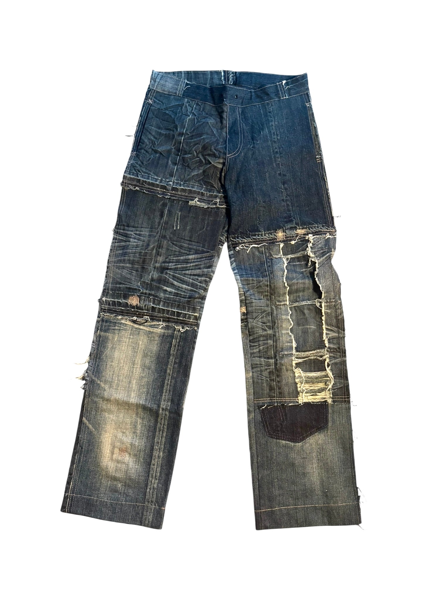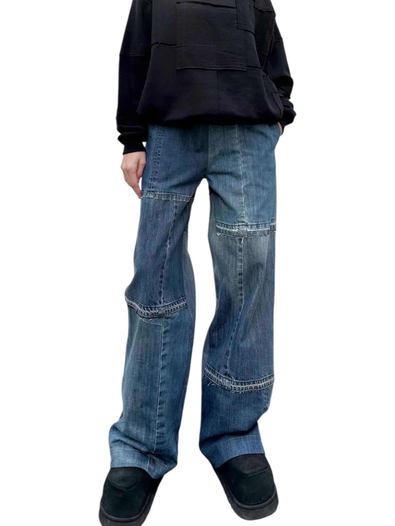 Dad jeans by Aftur. Various shades of blue denim.